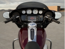 Мотоцикл Harley-Davidson Street Glide станет лучшим решением для любителей мототуризма. Его силовой агрегат Twin Cam достаточно мощный для уверенной езды в полностью снаряженном состоянии по горному серпантину с подъемами и поворотами. Эргономика мотобайка позволяет забыть об усталости и пассажиру, и водителю, чему способствует удобная посадка и мягкое сиденье. В дизайне мотоцикла Harley-Davidson Street Glide выделяется культовый обтекатель Bat Wing. Внешний вид этого культового хот-род бэггера обращает на себя внимание своими обновленными вместительными кофрами, абсолютно новыми индикаторами и классической оптикой Hiawatha с галогенными и противотуманными фарами. Отлично зарекомендовала себя и работа шестиступенчатой КПП. Мотобайк Harley-Davidson Street Glide оборудован фирменной ABS Reflex, динамически связанной с тормозными системами посредством электроники. Это существенно повышает управляемость и безопасность байка, конструкция которого базируется на прочной стальной дуплексной раме и надежной регулируемой подвеске.